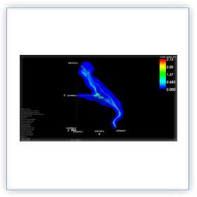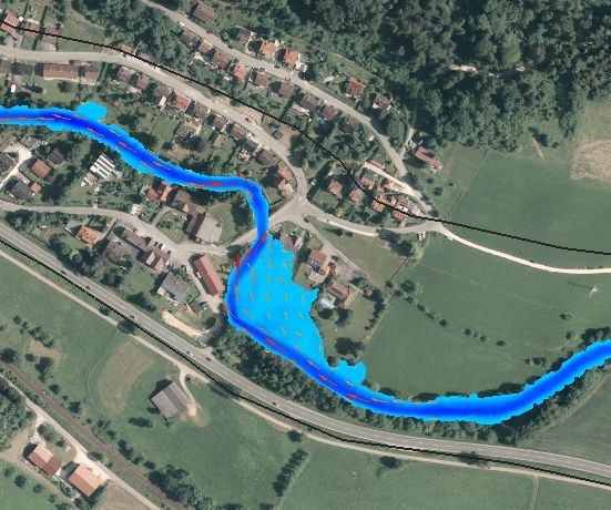 Tiefengemittelte 2D-Modelle ermöglichen, dass die Strömung an jeder Stelle im Untersuchungsgebiet als über die Fließtiefe gemittelter Wert ausgegeben werden kann. 2D-Modelle erlauben insbesondere bei komplexen Strömungsverhältnissen bzw. Flussbettgeometrien mit Bauwerken und/oder mit vegetationsreichen überfluteten Vorländern eine relativ genaue Berechnung der Strömungskennwerte.